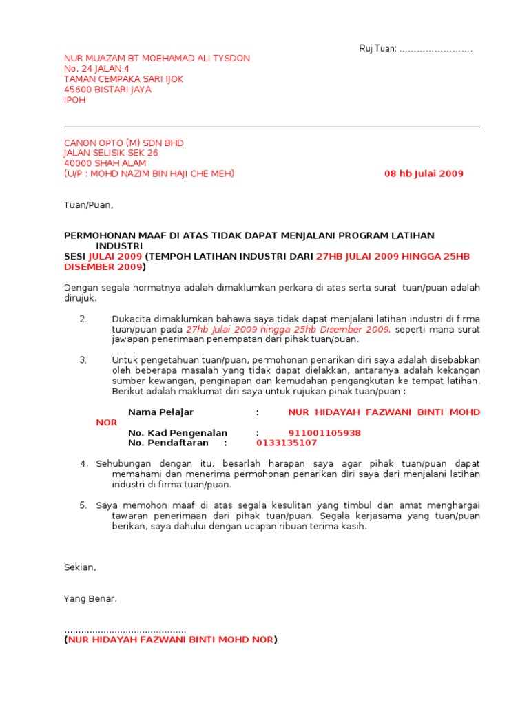 Contoh Kedua Surat Penarikan Diri N Mohon Maaf Pelajar Ke Firma Pdf